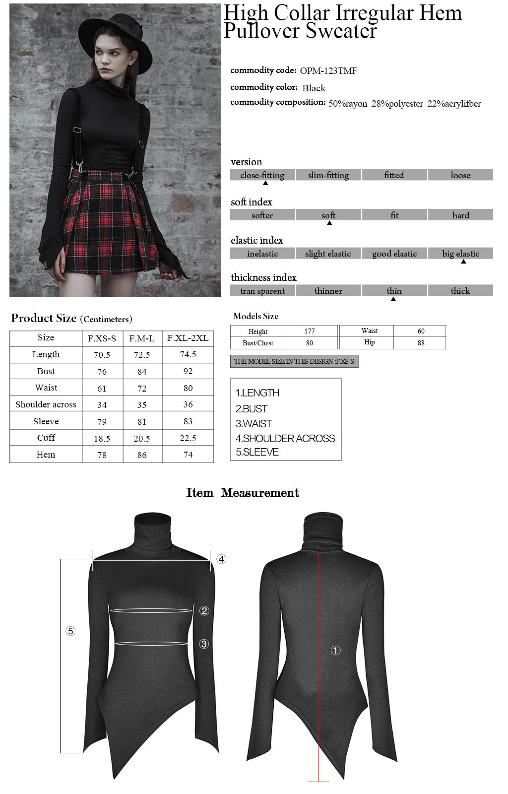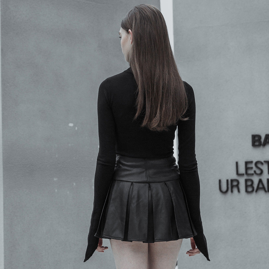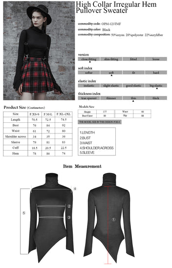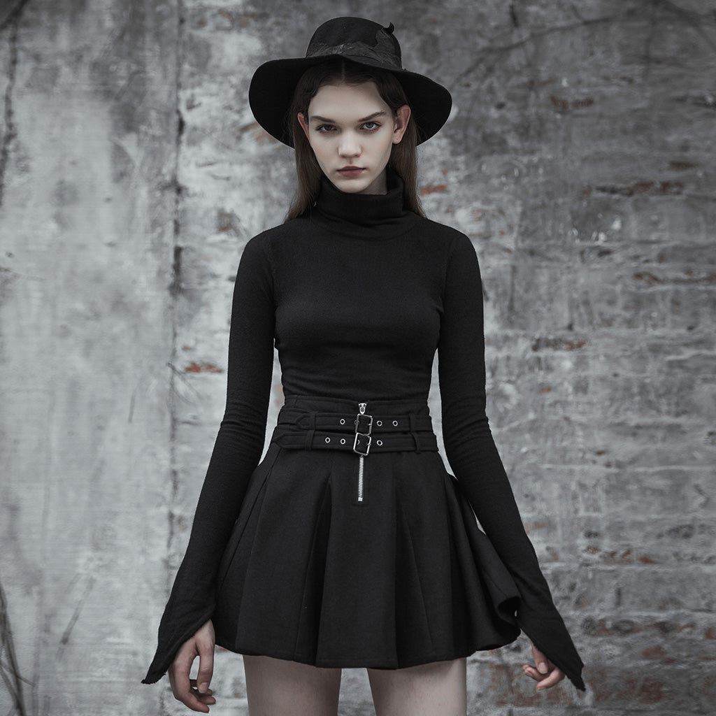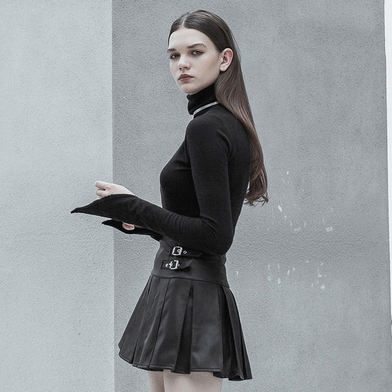 Pointed sleeves and hem, high turtleneck women's pullover top.