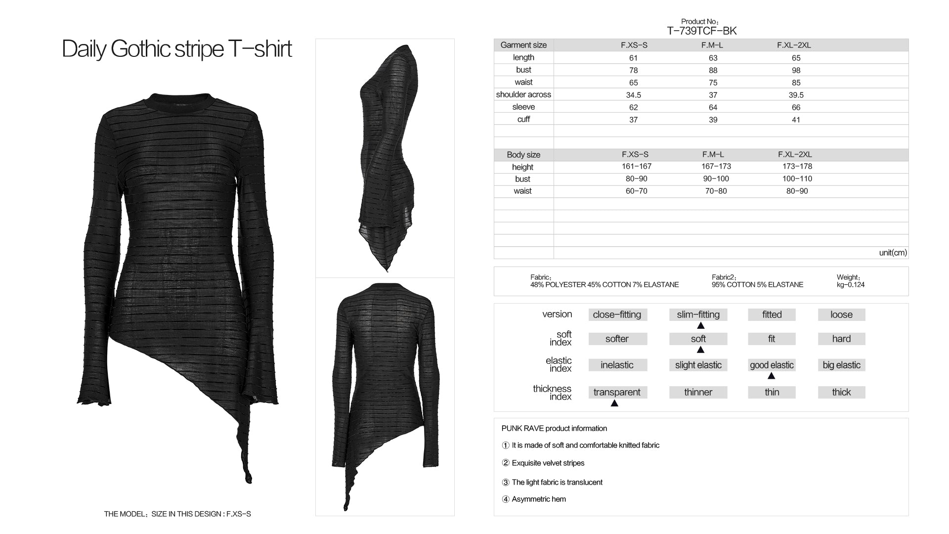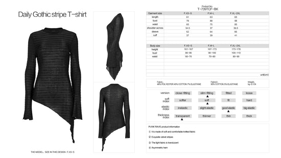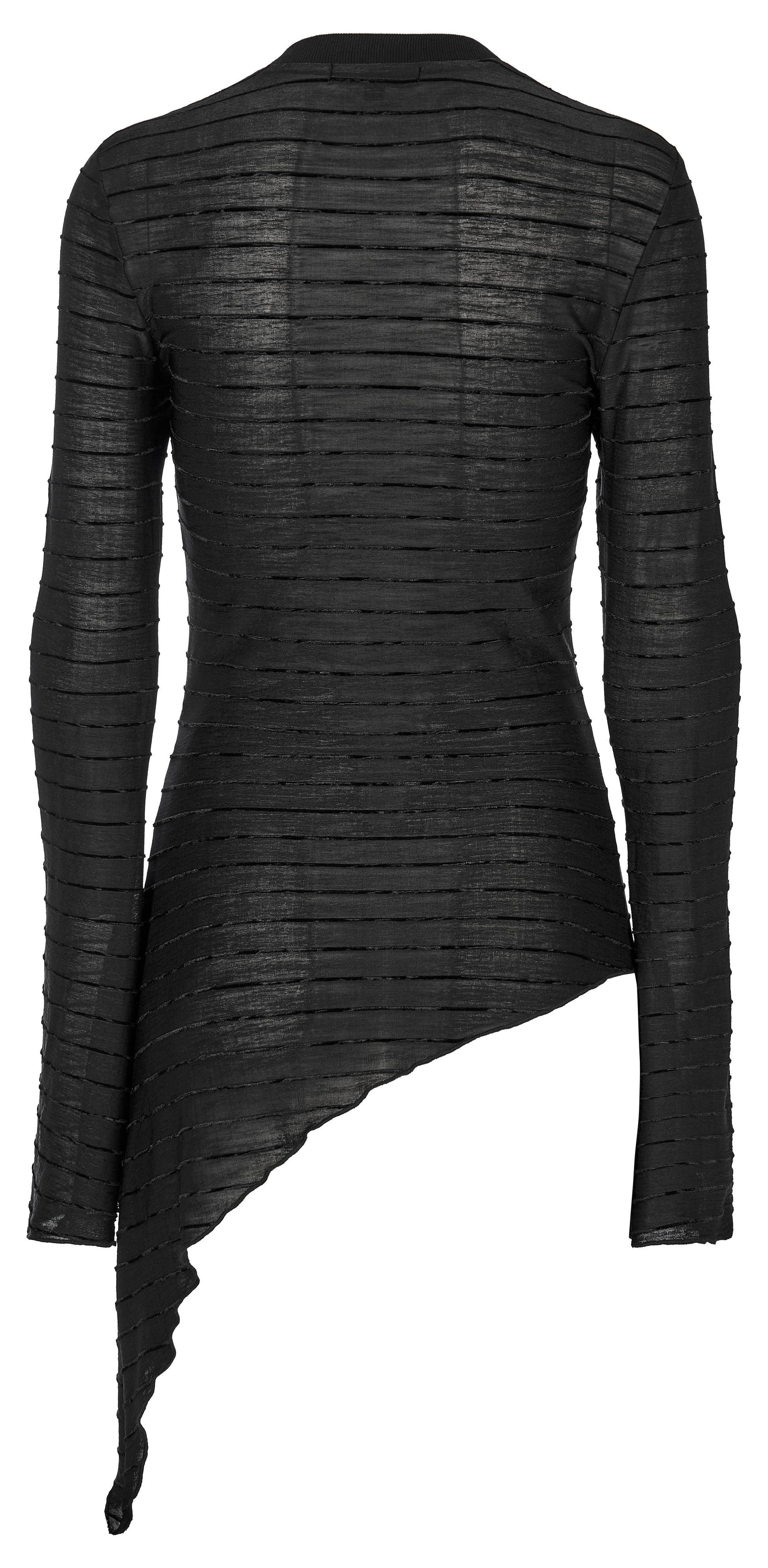 - Semi-sheer, stretchy black knit fabric with horizontal, narrow, velvet stripes